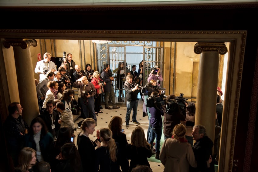 Mientras ellos se preparaban ya para el desfile, en la entrada del palacio se agolpaba la prensa para ir recibiendo a todos los famosos que asistían al evento.