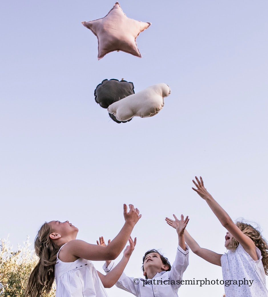 En esta sesión de fotos salieron a jugar al campo en camisón y pijama, con los cojines de la firma Bel&Soph, los hay en varias formas y colores.