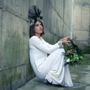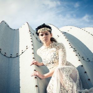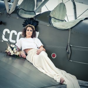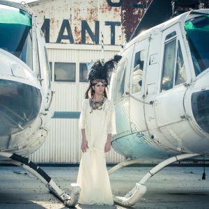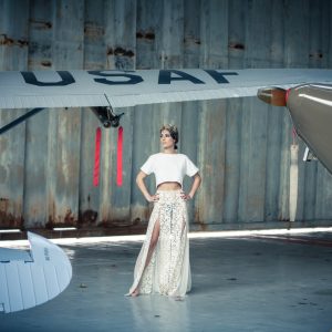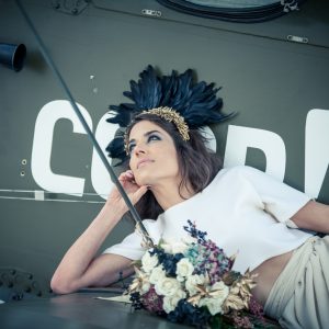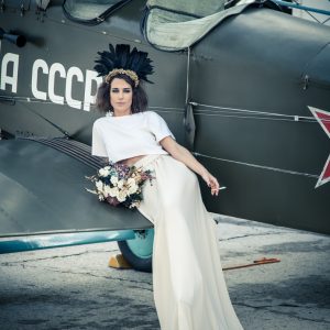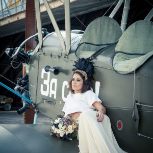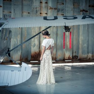 Es una diseñadora de trajes de novia con mucha personalidad, cuando me propusieron este trabajo Suma Cruz, Marcela Mansergas y Sally Hambelton me encanto, y además en un angar de aviones antiguos. Me pareció la pera el reportaje.