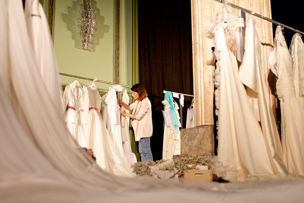 El backstage desde las 5h de la tarde en plena ebullición, montando los espacios, ordenando sillas, maquillando a las modelos, cosiendo y dando los últimos remates a los vestidos, colección de zapatos por todas partes. La fruta y el agua corría por doquier entre las modelos que llevaban horas preparándose.