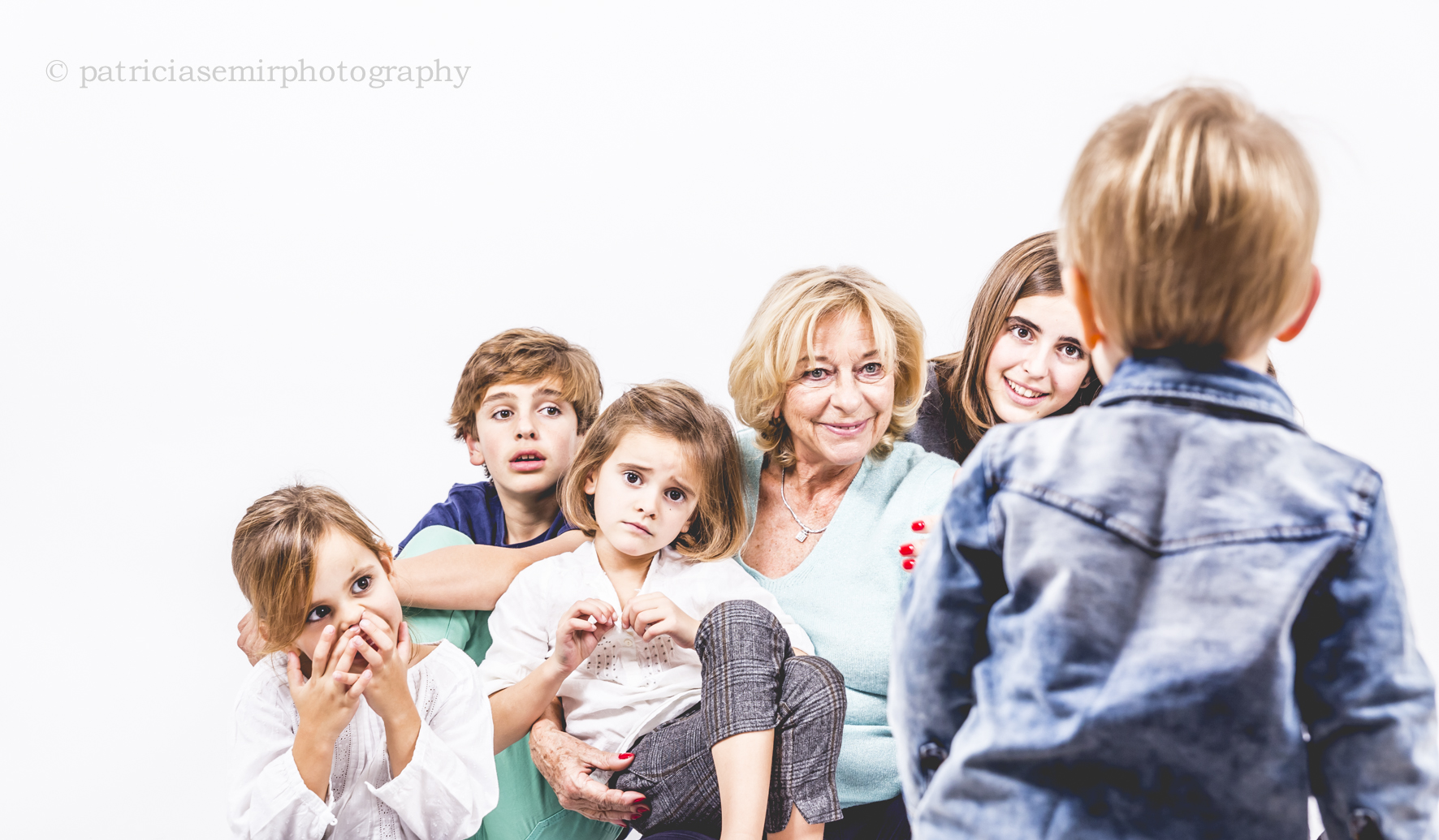 Hace unos días tuve el privilegio de tener en mi estudio a una abuela con todos sus nietos, fue una sesión de fotos que me encantó, es que los abuelas me despiertan siempre mucha ternura. Y esta abuela en concreto disfruto mucho de la sesión de fotos que le habían regalado sus hijos. Y es que no hay mejor regalo que tener una foto con todos tus nietos. Le encantaron las fotos desordenadas donde todos van por su lado, se rien y cada uno muestra un poco su personalidad. He intentado buscar con mi objetivo el momento de las fotos, las hay posadas pero no las enseño porque son las que menos me gustan. Me encanta el desorden, la naturalidad que los niños se muestren como son. Así es el alma de mi trabajo….